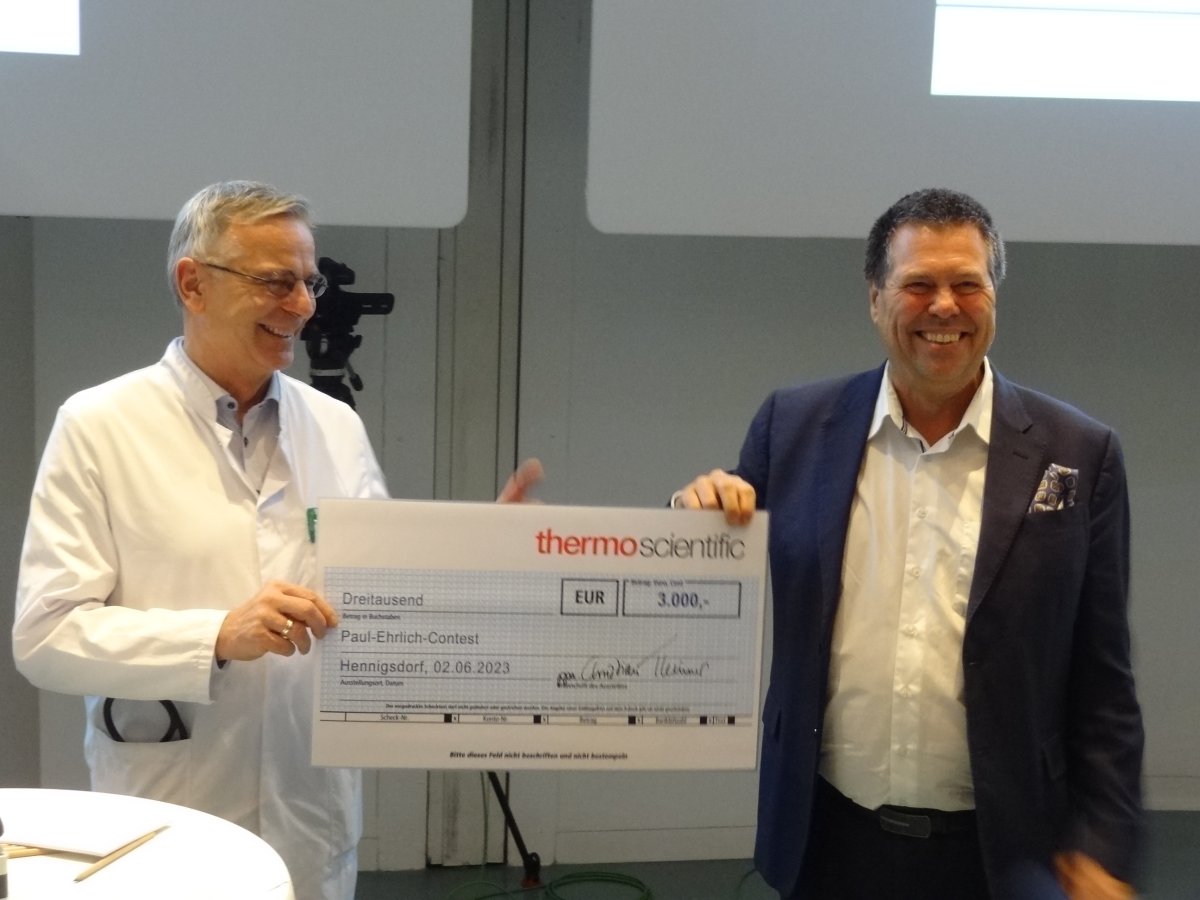 Scheck-Übergabe durch Thermo Fisher Scientific |